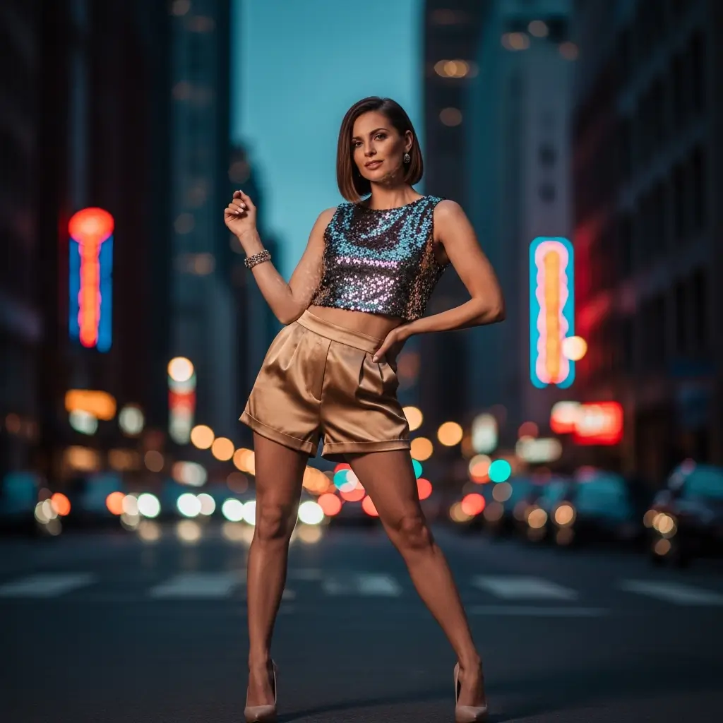 Why should dresses have all the party fun? I wore silk shorts with a sequin top to a gallery opening last month, and honestly, I felt like a million bucks. The combination of lustrous silk and sparkling sequins creates this modern take on evening wear that’s both comfortable and show-stopping.