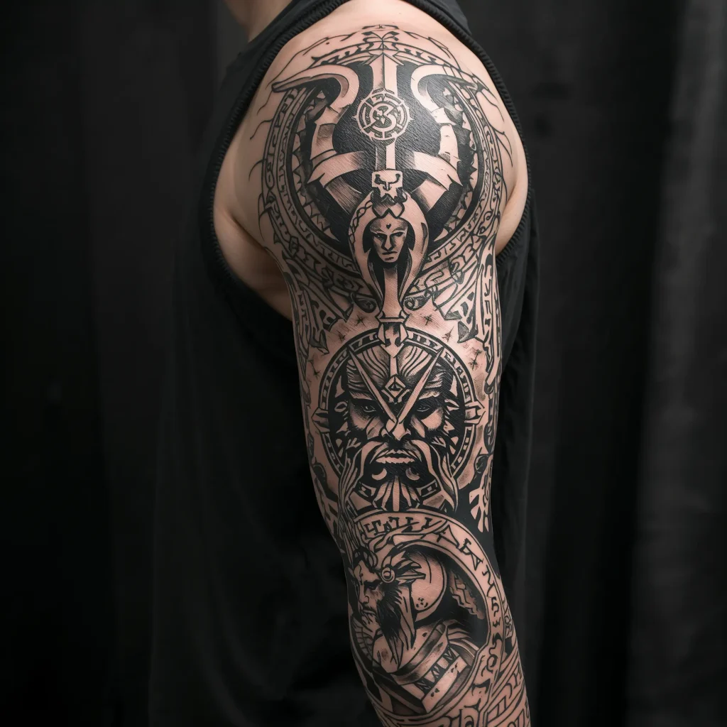 What makes these sleeves special? Each symbol carries deep meaning that connects to concepts like wisdom, strength, destiny, and sacrifice. It’s basically wearing your personal philosophy on your arm.
