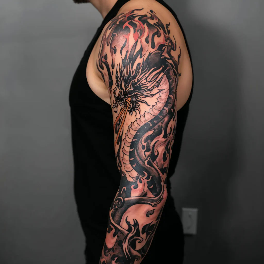Let’s be real – dragon sleeves are the ultimate power move. Whether you go Eastern or Western style, nothing says “I’m not messing around” quite like a dragon breathing fire down your entire arm.