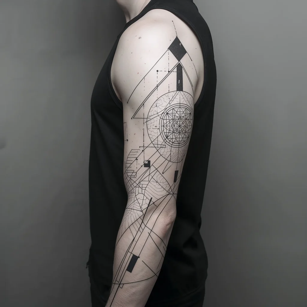 I recently saw a guy at my gym with this style running from his shoulder to his wrist, and the way those sharp angles and curved lines played off each other? Chef’s kiss. The beauty here lies in the contrast – you get these organic tribal flows interrupted by precise geometric patterns that look like they were designed by an architect.