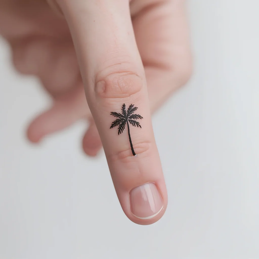 Bringing those tropical vibes to your fingers, the micro palm tree captures vacation mode in permanent ink. This design has become hugely popular among travel lovers and beach enthusiasts, and I completely understand the appeal.