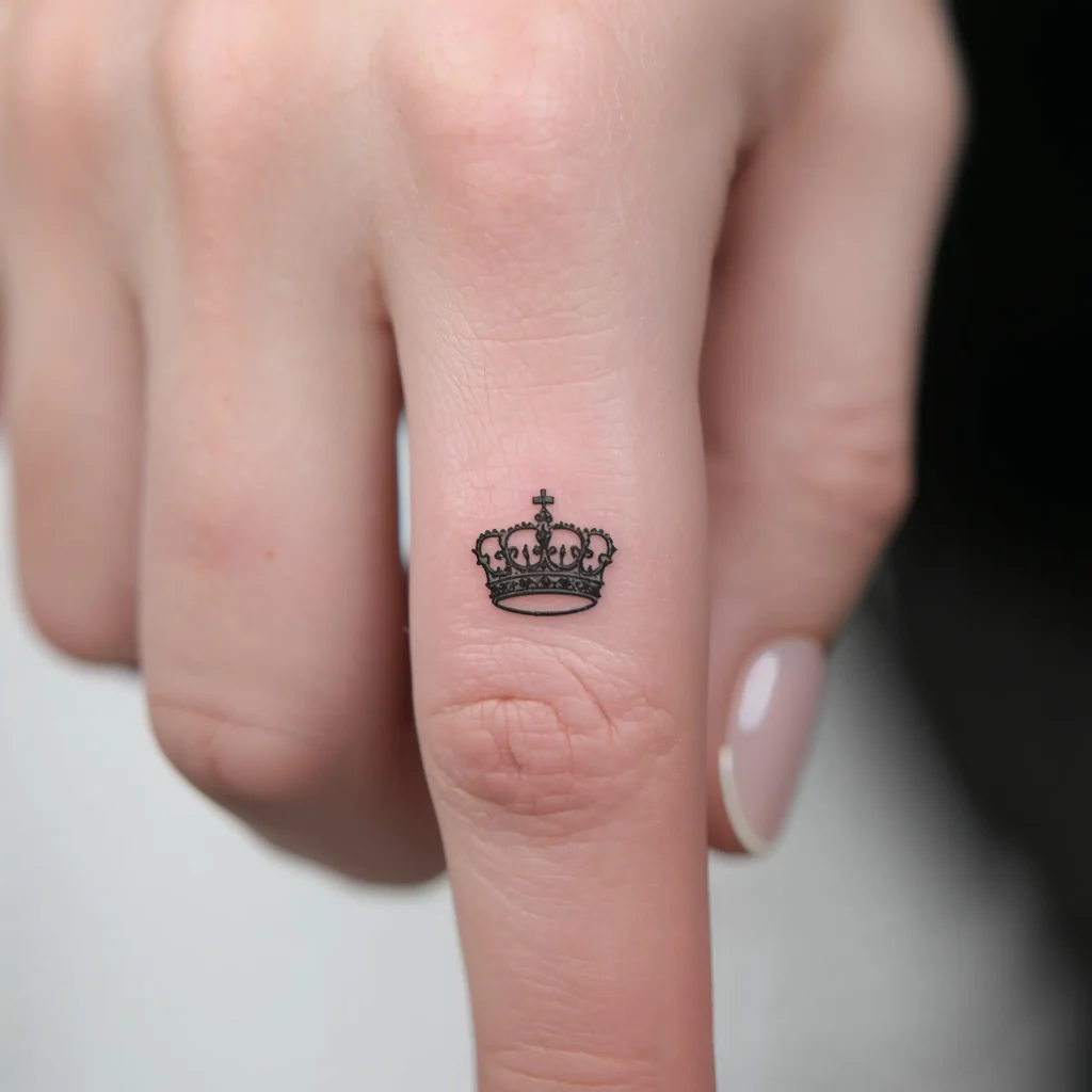 What I love about crown tattoos on fingers? They work with stacked rings to create this whole royal aesthetic. Place a crown tattoo above your rings, and suddenly your whole hand jewelry game levels up. Plus, unlike text tattoos that literally spell out “queen” or “king,” the crown lets you claim your throne without saying a word.