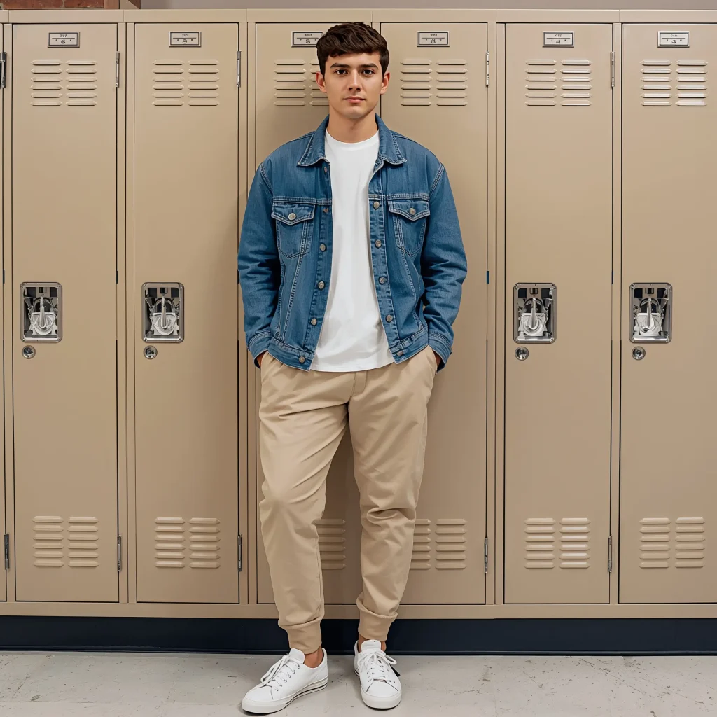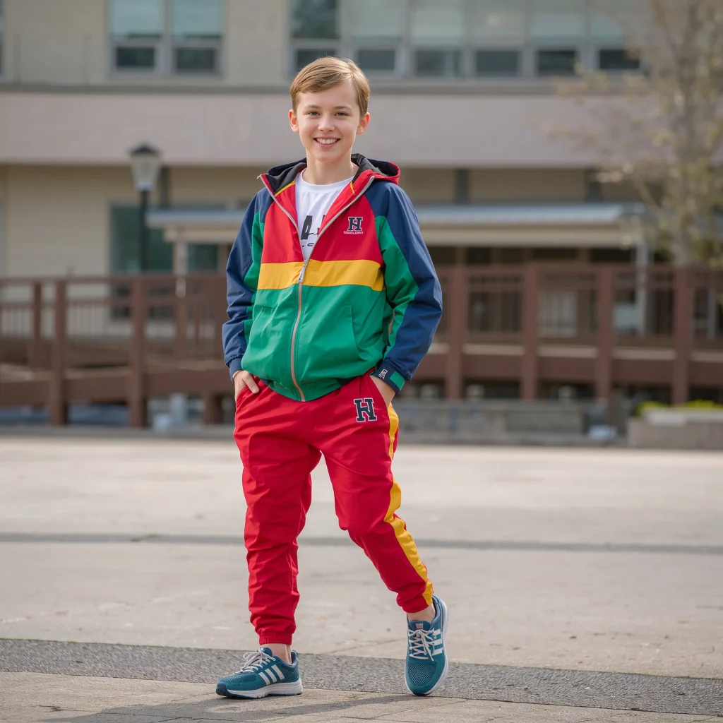 Weather-wise, this outfit crushes it. The windbreaker protects against unexpected rain or wind, while the joggers keep you comfortable all day. IMO, this is the ultimate practical-meets-trendy school outfit.