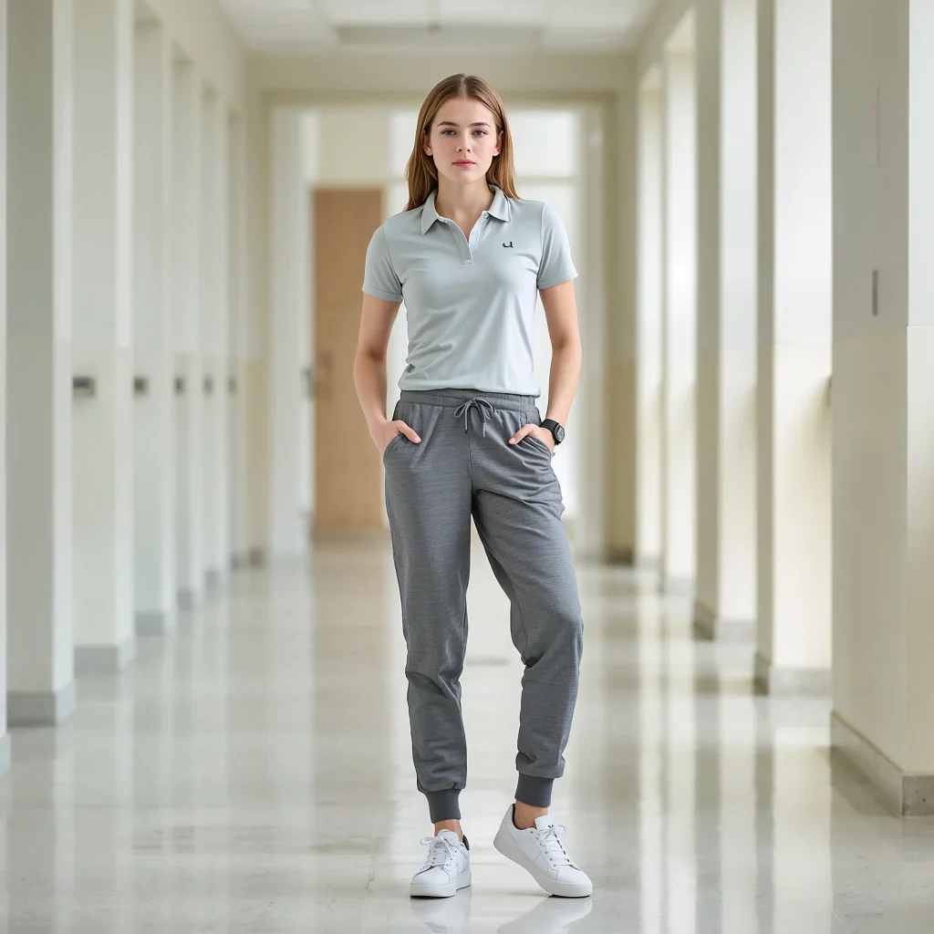 Start with matching sets if you want that coordinated look without trying too hard. Gray, black, or navy sets work like magic because they look intentional. Add some white sneakers, and boom – you’re that student who somehow manages to look stylish during an 8 AM lecture.