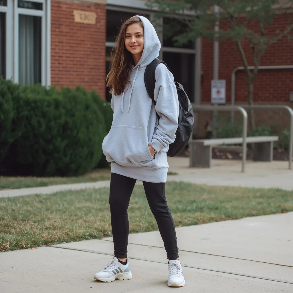 But here’s where you make it interesting: contrast your colors. Rock a bright hoodie with neutral sweatpants, or go bold with patterned sweats and a solid hoodie. I personally love throwing on my oversized university hoodie with black joggers – it gives off those “I’m smart but also comfortable” vibes that professors seem to appreciate.
