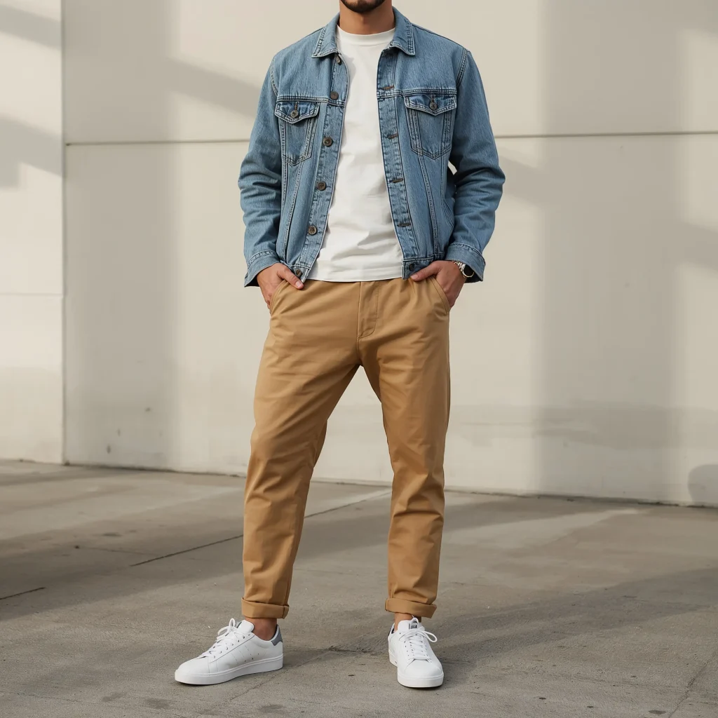 The trick is choosing the right shade of denim. Light wash denim jackets work beautifully with beige or tan sweatpants, while dark denim pairs better with grey. Don’t overthink it though – sometimes the best outfits happen by accident.