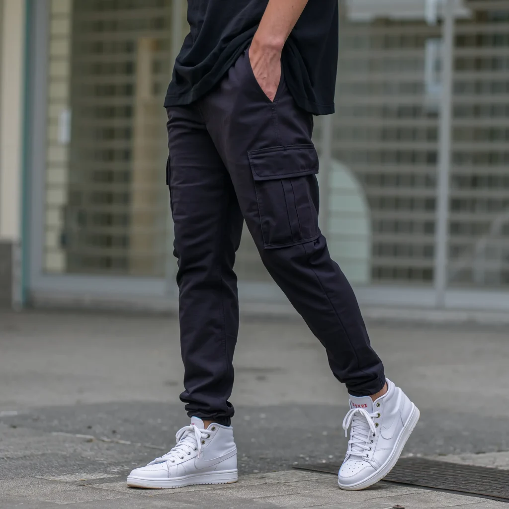 - Choose cargo sweatpants with subtle pockets (not too bulky)