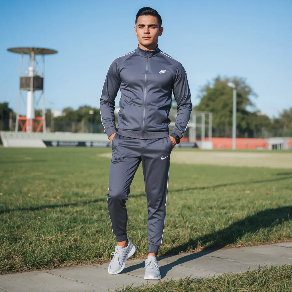 Going full tracksuit might seem obvious, but hear me out – the modern tracksuit is a thing of beauty. Matching sweatpants with a tracksuit jacket creates a cohesive, athletic look that’s both retro and contemporary.