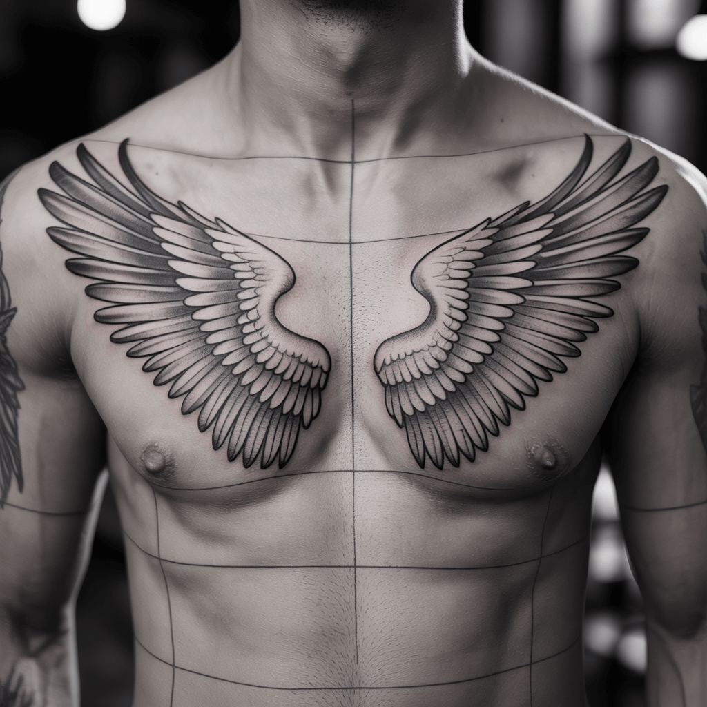 I personally dig how wings frame your chest naturally. They follow your pec muscles, creating this V-shape that enhances your physique. Plus, you can extend them up toward your shoulders or even onto your neck for that full guardian angel effect.