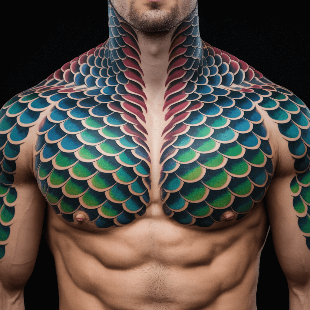 Dragon scale tattoos create this incredible textured effect that makes your skin look transformed. Starting from your chest and spreading up your neck, scales can follow your muscle definition, creating an armored appearance that’s both beautiful and badass.
