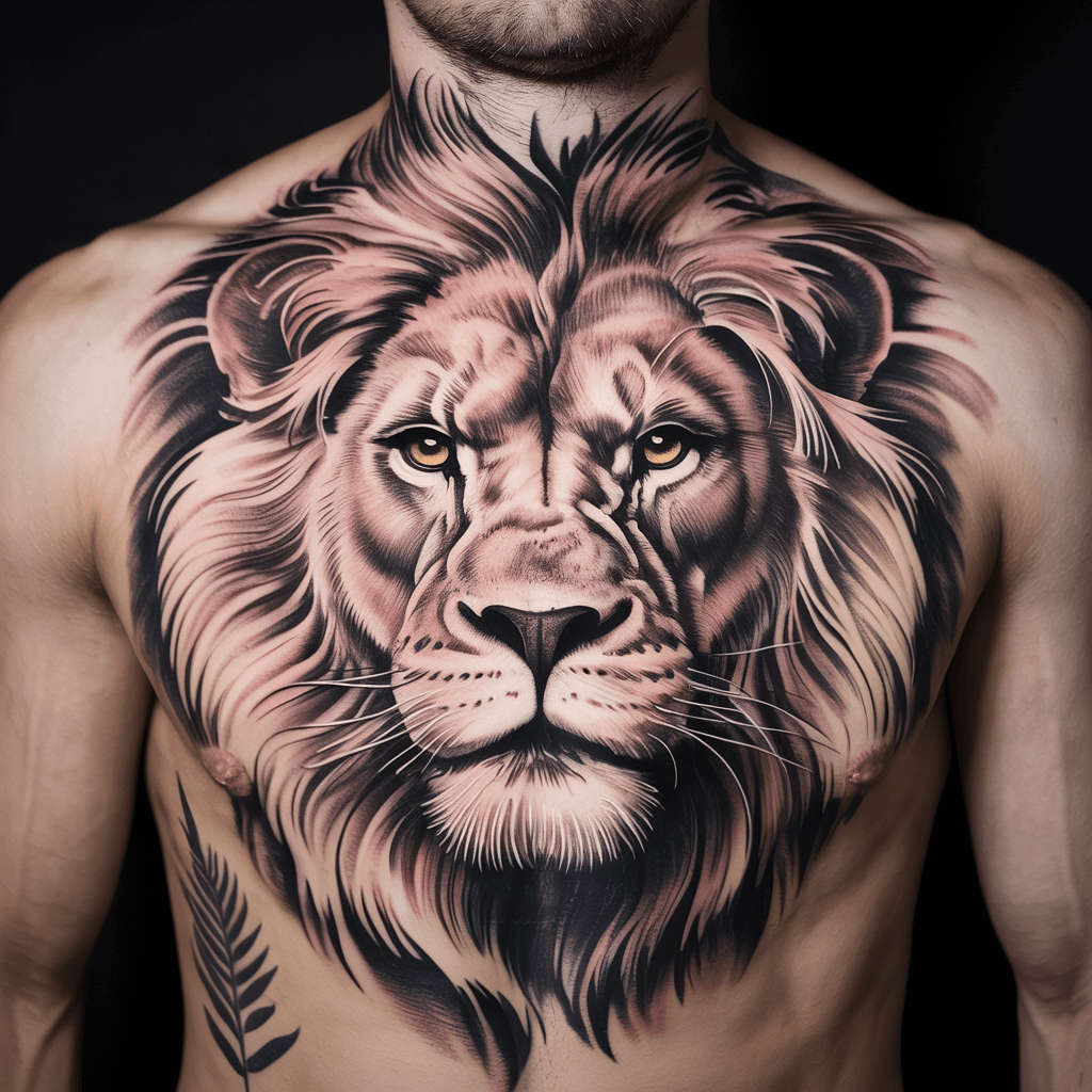 A lion portrait on your chest symbolizes courage, leadership, and raw power. Modern artists create photorealistic lions that look ready to roar, with manes that flow naturally toward your neck and shoulders.
