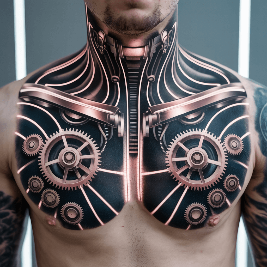 Biomechanical tattoos make you look like a cyborg, and I mean that in the best way possible. These designs create the illusion that machinery exists beneath your skin, with gears, pistons, and circuits seemingly integrated into your anatomy.