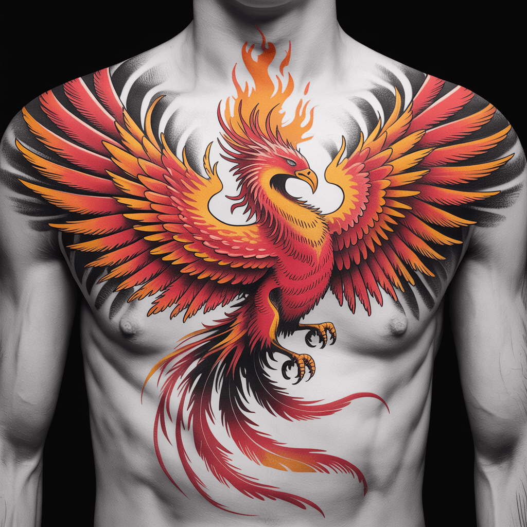 This design allows for incredible creativity. Some artists go hyperrealistic, others prefer geometric interpretation, and some blend styles for something unique. The chest-to-throat placement means the phoenix literally rises, creating vertical movement that elongates your torso.