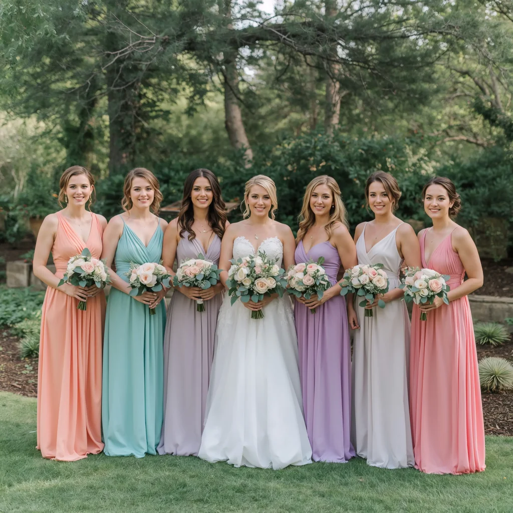 The trend now leans toward same color, different styles or same style, different shades. This approach photographs beautifully and ensures everyone feels comfortable and confident. Nobody wants to be that bridesmaid who can’t sit down because her dress is too tight!