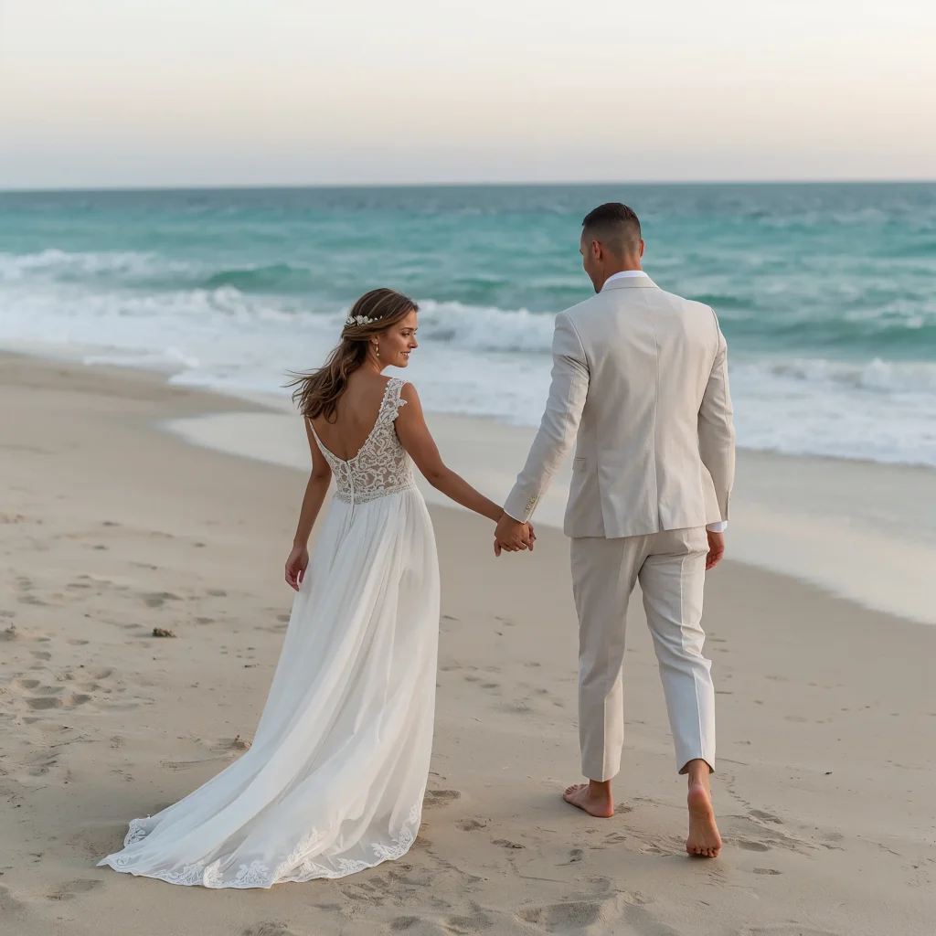 The best part about beach weddings? The casual elegance means you can get away with simpler outfits and let the natural beauty of the setting be your backdrop. Minimal jewelry, natural makeup, and effortless hairstyles often look better than overdone looks in beach settings.